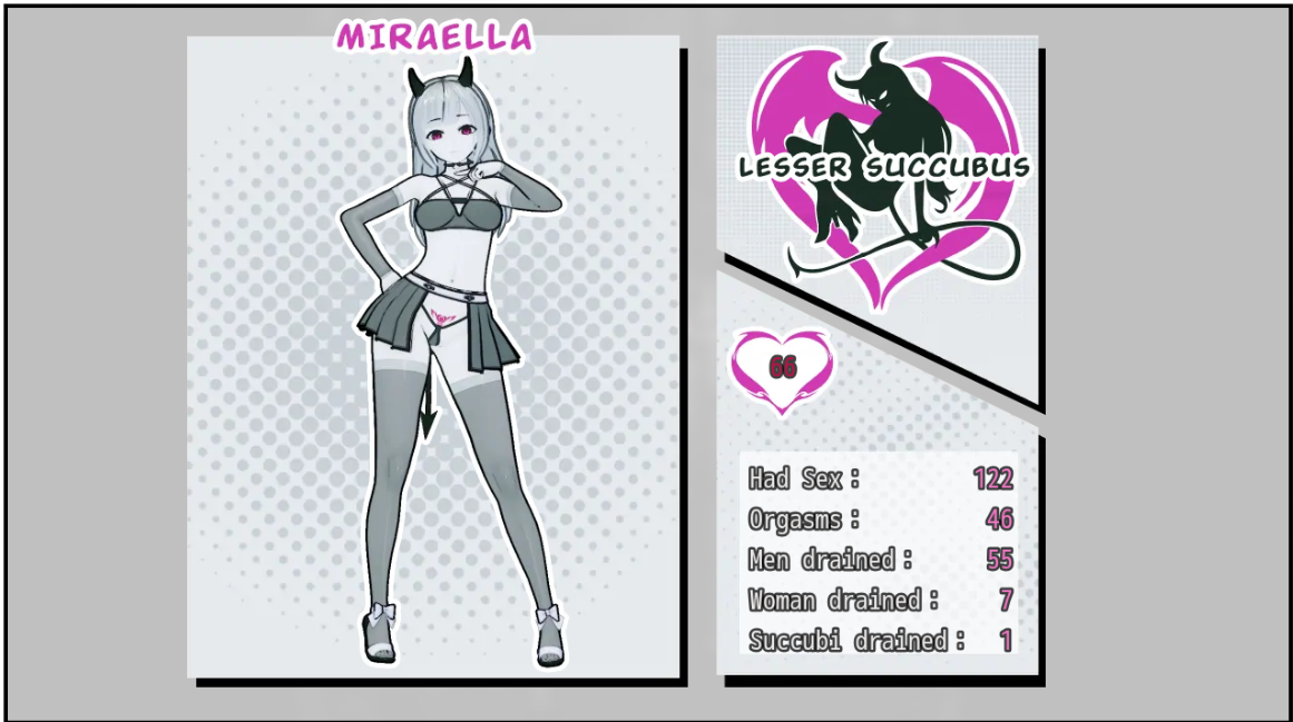 great game, great scenes, good story, main character is extremely sexy, highly recommend if you’re into succubi and sex fight mechanics
